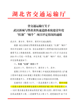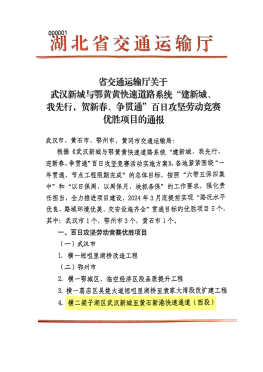 圖:湖北路橋項(xiàng)目獲省交通運(yùn)輸廳通報(bào)表揚(yáng)